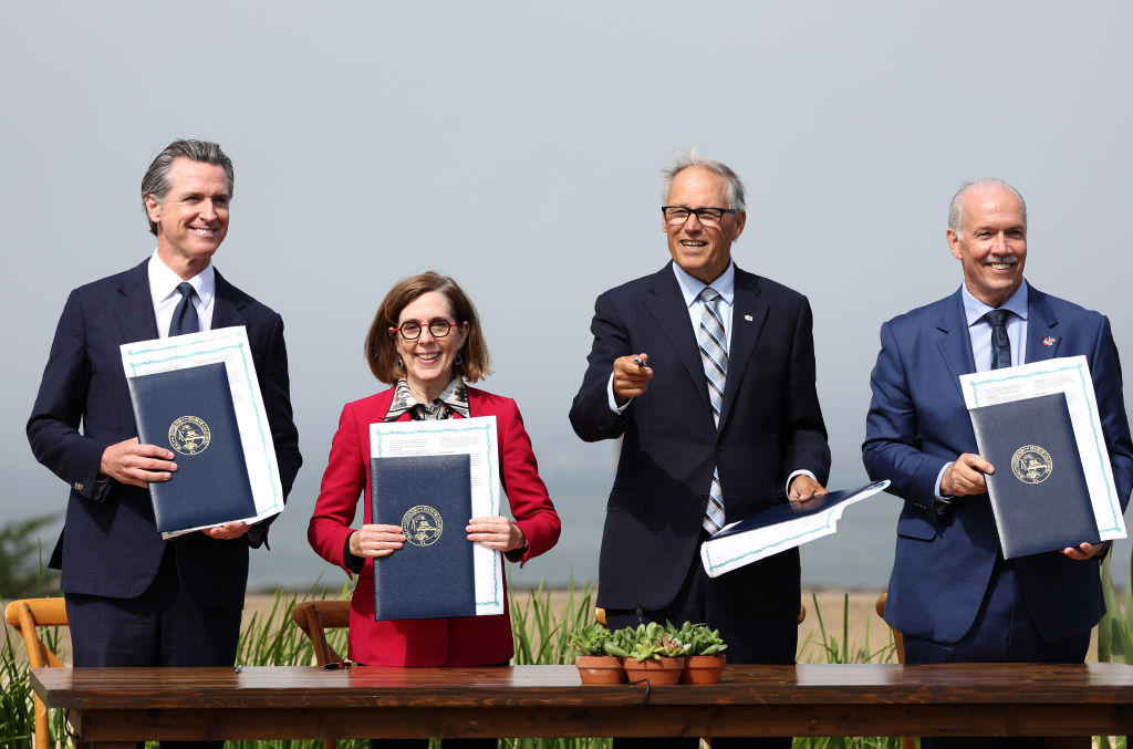 The members of the Pacific Coast Collaborative—an international governmental agency formed by the three U.S. states and the Canadian province in 2008—are facing droughts, excessive heat, and smoke from large wildfires, their leaders said. By signing a new statement of cooperation, they planned for a more aggressive transition to low-carbon emissions, investments in electric vehicle charging stations along interstate highways, and a clean electric grid.