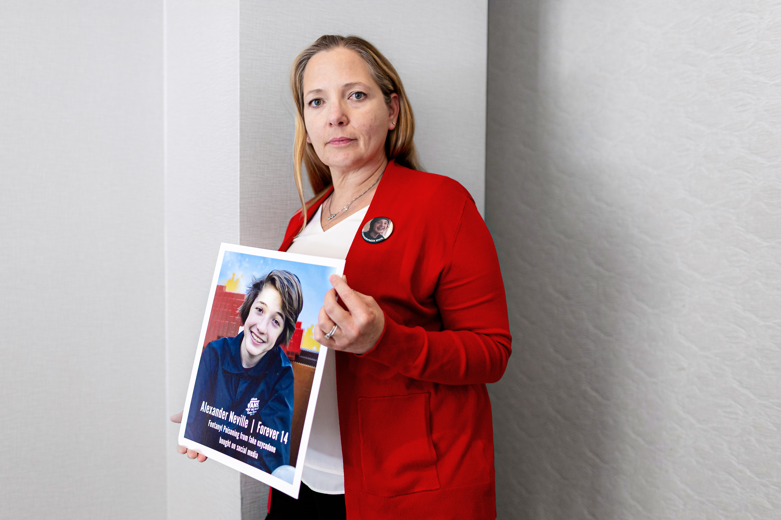 Through the nonprofit Alexander Neville Foundation, the grieving mother shares her personal pain with other parents. By her estimation, Amy Neville has given a couple hundred presentations in person and online; about 300,000 people have heard her warnings about the dangers that lurk on social media, leading to deaths such as Alex’s.