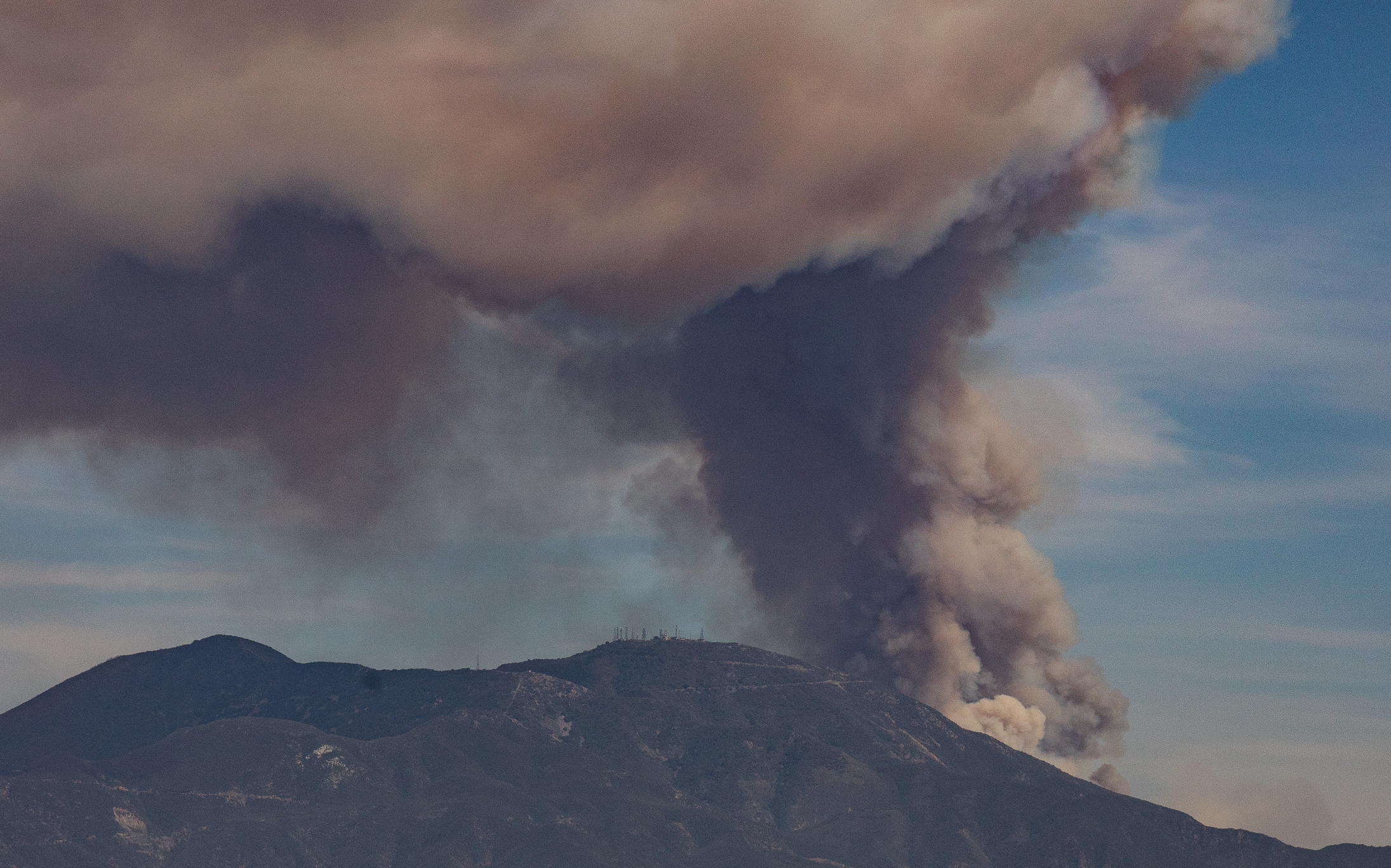 The blaze sent a thick plume of smoke into the air, visible across most of Orange and Riverside counties, and in northern San Diego County.