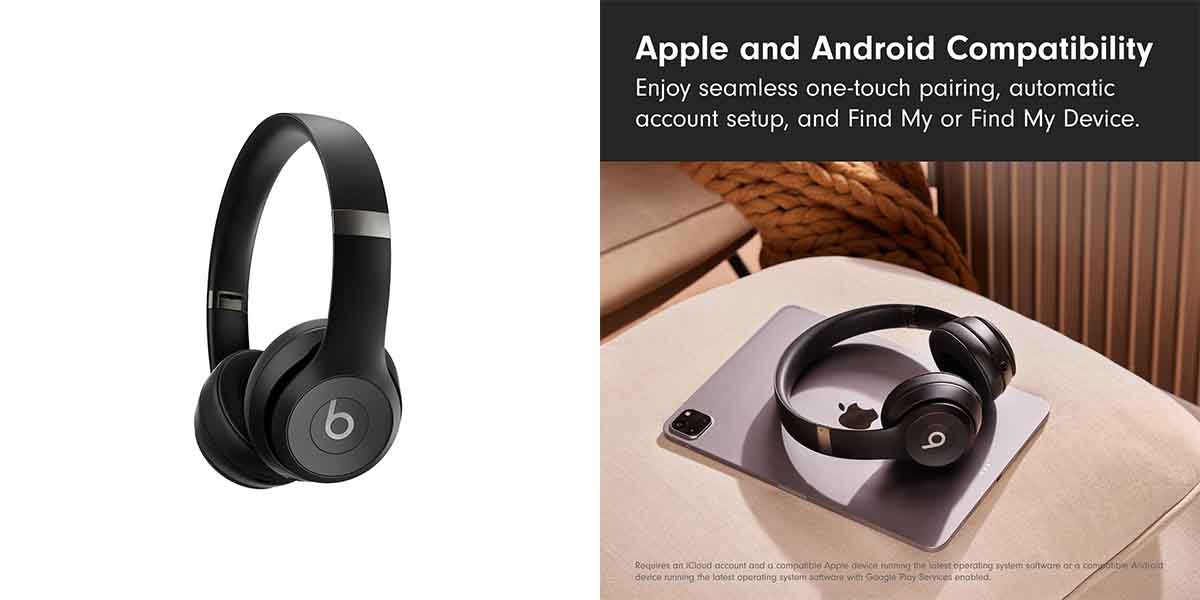 Beats Solo 4 HeadphonesExperience premium sound with the Beats Solo 4 Wireless On-Ear Headphones. Enjoy up to 50 hours of battery life, high-resolution lossless audio, and personalized Spatial Audio with dynamic head tracking. It’s compatibie with iOS and Android. 10-minute Fast Fuel charge for 5 hours of playback.