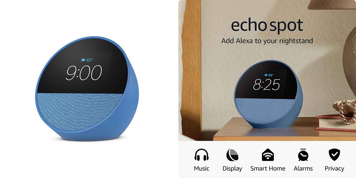 Amazon Echo SpotPerfect for desks or nightstands, this compact device combines a smart speaker with a small screen to help keep your day on track. Alexa answers questions, controls smart home devices, and even shows weather or calendar updates at a glance. The design fits easily into kitchens or offices, and the ocean blue color adds a nice pop without being overpowering. It’s a handy assistant for everyday life.
