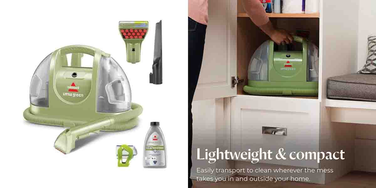 Bissell Little Green CleanerPerfect for tackling spots and stains on carpets and upholstery, this portable cleaner is a handy tool for both home and car use. It comes with specialty tools designed to reach tight spaces and tricky areas, making detail work easier. Lightweight and easy to use, it cleans effectively without soaking surfaces. Whether it’s pet messes or everyday spills, this cleaner helps keep fabrics fresh and looking their best.