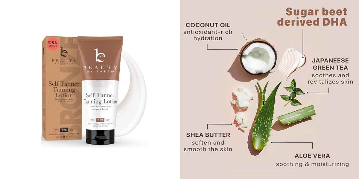 Beauty by Earth Self Tanner Medium to DarkThis USA-made self-tanner gives a natural medium to dark glow with organic ingredients like aloe vera and coconut. It’s moisturizing, streak-free, and perfect for a sun-kissed look without the sun.