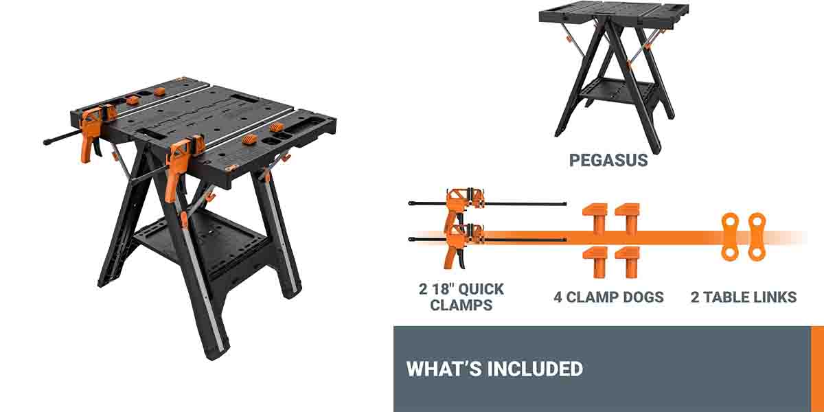 Worx Pegasus Work Table and Sawhorse WX051This portable table flips between a steady work surface and a reliable sawhorse. It sets up in seconds, feels solid during use, and includes built-in clamps to keep things in place. Great for small spaces or anyone who needs a compact, flexible setup for home projects.