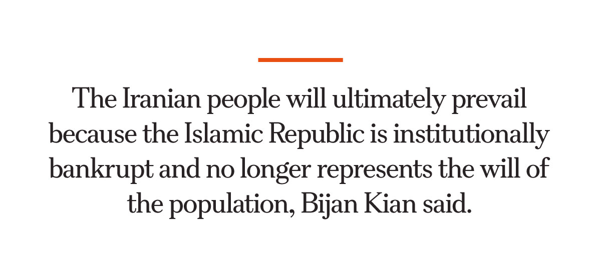 The Iranian people will ultimately prevail, Kian said, because the Islamic Republic is institutionally bankrupt and no longer represents the will of the population.