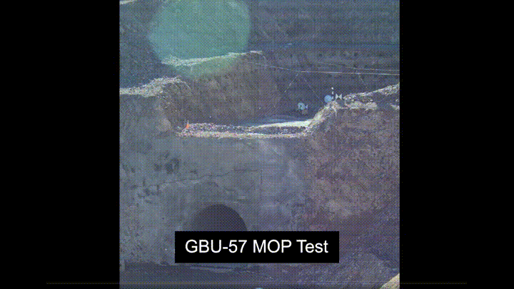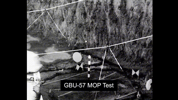 The Air Force, in coordination with the Defense Threat Reduction Agency, tests the GBU-57 Massive Ordnance Penetrator, a precision-guided, bunker-busting weapon designed to destroy deeply buried and hardened targets, in Washington on Dec. 11, 2020. The test demonstrated the Air Force’s ability to strike heavily reinforced underground facilities and mountain complexes. (Air Force Television Pentagon/Defense Visual Information Distribution Service)